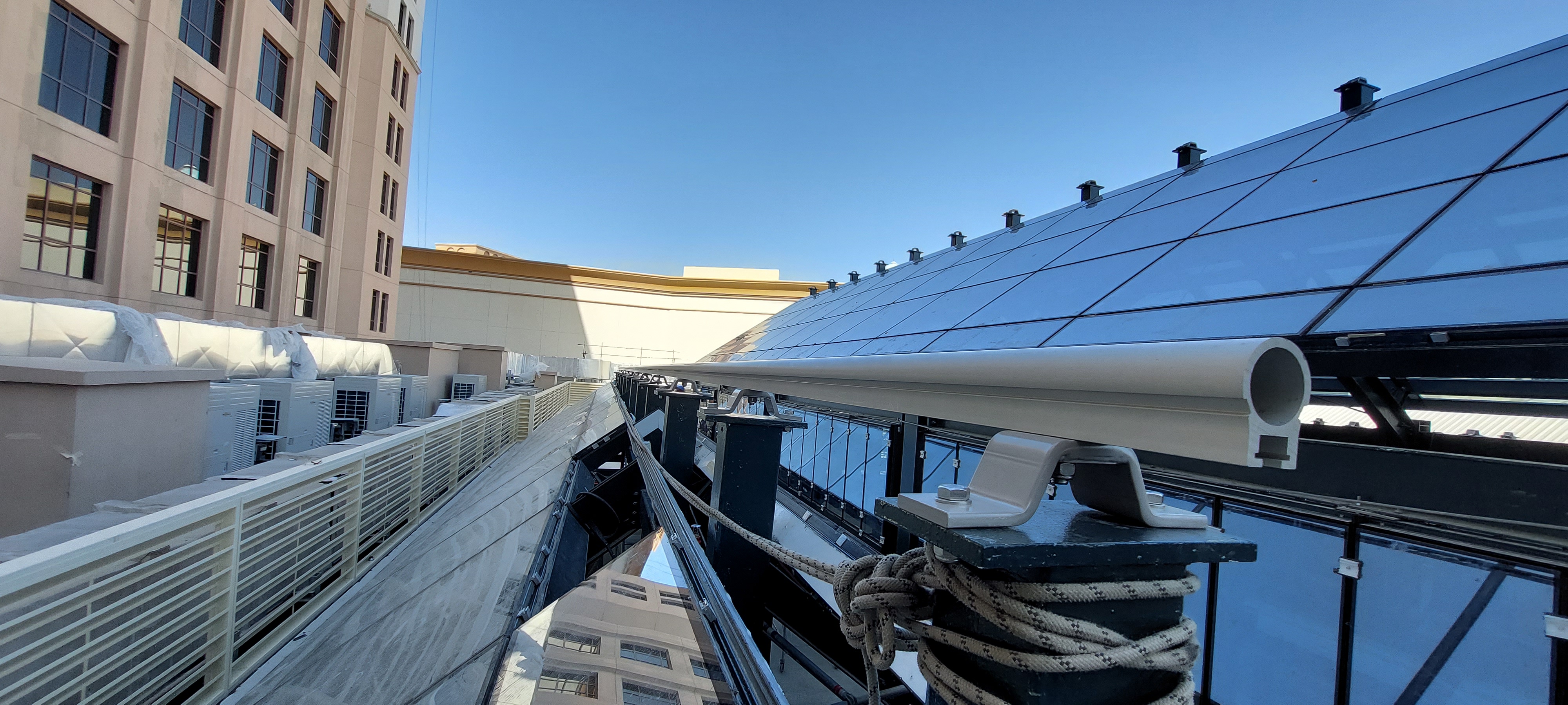 The ProRail traveller features 8 solid steel rollers to distribute the forces over multiple sintered bushings to allow the traveller to move freely even under working loads. This allows operatives to move along the building without needing to detach from the system.