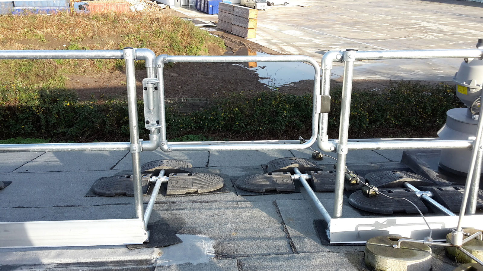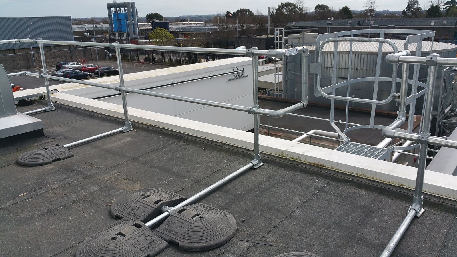 Kee Guard® Rooftop Guardrail for Ladder Access Points provides a non-penetrating fall protection solution for a safety railing that is designed to protect workers when using a fixed ladder as they enter and exit the rooftop.